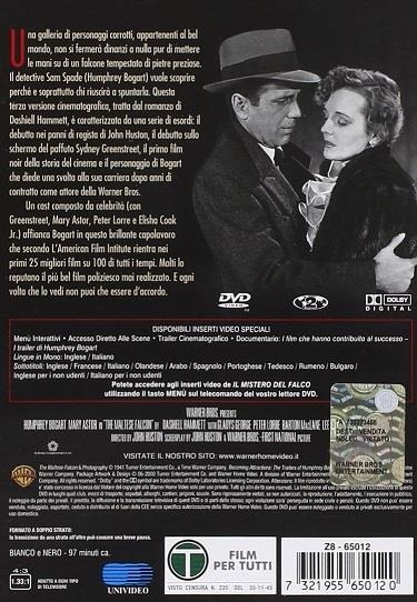 Ingaggiato da una ragazza che gli chiede di recuperare una preziosa statuetta, un detective privato di San Francisco si trova coinvolto in una vicenda animata da loschi personaggi. Rifacimento di "The Maltese Falcon" 1931... VD