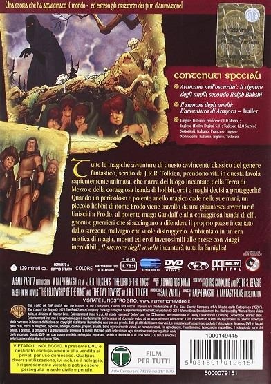 Il romanzo scritto da J.R.R. Tolkien è rappresentato in questa favola animata, che narra della Terra di Mezzo e della coraggiosa banda di hobbit, eroi e maghi decisi a proteggerla. Quando un pericoloso e potente anello magico cade nelle sue mani, Frodo ha il dovere di distruggerlo e così inizia la sua avventura...