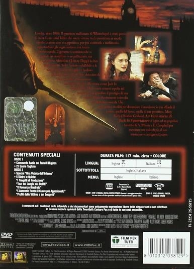 Londra 1888.Nel quartiere malfamato di Withechapel si aggira un serial killer che uccide le prostitute attirandole con grappoli d'uva per poi sventrarle ed asportarne gli organi interni. L'ispettore Abberline grazie al suo istinto e alle visioni provocate da oppio e laudano riuscirà a scoprire il misterioso assassino. Ma la verità verrà per sempre tenuta nascosta per salvaguardare la reputazione dei reali coinvolti nella vicenda. Tratto dall'omonima serie a fumetti di Alan Moore e Eddie Campbell.