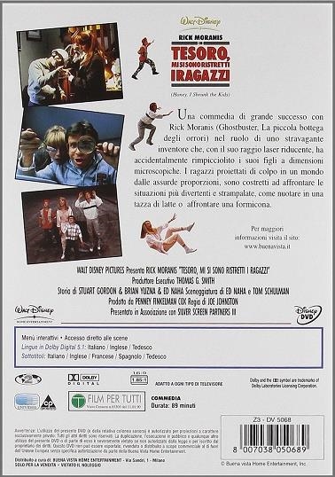 Uno stravagante inventore, alle prese con il suo raggio laser che rimpicciolisce, ha incidentalmente ridotto i propri figli a dimensioni microscopiche. Il film ha avuto vari seguiti.