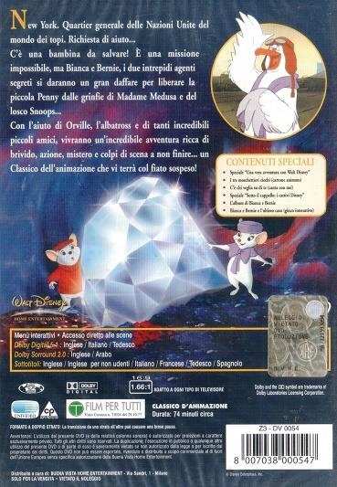 New York. Quartier generale della Nazioni Unite del mondo dei topi. C'è una bambina da salvare. E' una missione impossibile ma Bianca e Bernie, i due intrepidi agenti segreti si daranno un gran daffare per liberare la piccola Penny dalle grinfie di Madame Medusa e del losco Snoops. Con l'aiuto di Orville, l'albatross, e di tanti piccoli amici, vivranno un'incredibile avventura.