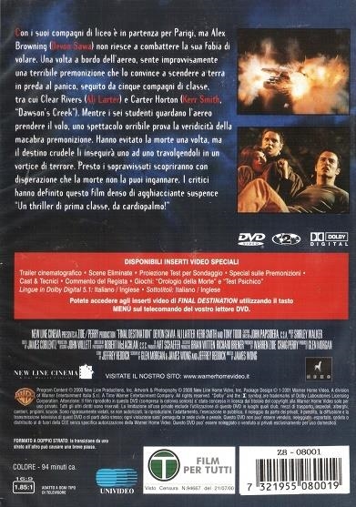 A bordo di un aereo un ragazzo ha una premonizione che lo convince a scendere a terra, seguito alcuni suoi amici. L'aereo precipita, ma presto scopriranno che non è facile ingannare il proprio destino. "Il tuo destino è già segnato. Non sfidare la morte".