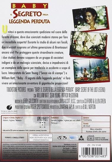 Unitevi a questa emozionante spedizione nel cuore della foresta africana, dove due scienziati moderni stanno per fare un'incredibile scoperta! Durante lo studio di alcuni rari fossili, due scienziati scoprono un'ultima generazione di Brontosauri ancora vivi! Per proteggere queste straordinarie creature, i due studiosi devono scappare da un gruppo di cacciatori indigeni e da un malvagio scienziato, deciso a impadronirsi di un esemplare della specie per trasferirlo in occidente a scopo di lucro. Interpretato da Sean Young (“Senza via di scampo”) e William Katt, “Baby – Il segreto della leggenda perduta” vi farà vivere un'emozionante avventura di gigantesche proporzioni!