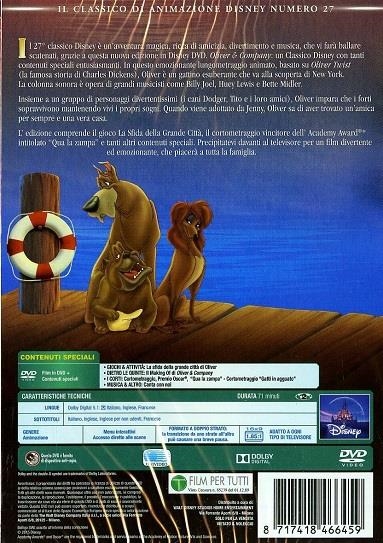 In questo emozionante classico dei cartoni animati, basato su Oliver Twist (la famosa storia di Charles Dickens), Oliver è un gattino esuberante che va alla scoperta di New York. La colonna sonora è opera di grandi musicisti come Billy Joel, Huey Lewis e Bette Midler. La nuova edizione in occasione del 20° Anniversario comprende il gioco La Sfida della Grande Città, il cortometraggio vincitore dell'Academy Award® intitolato “Dai una zampa” e tanti altri extra. Precipitatevi davanti al televisore per un film divertente ed emozionante, che non potrà non piacere a tutta la famiglia!