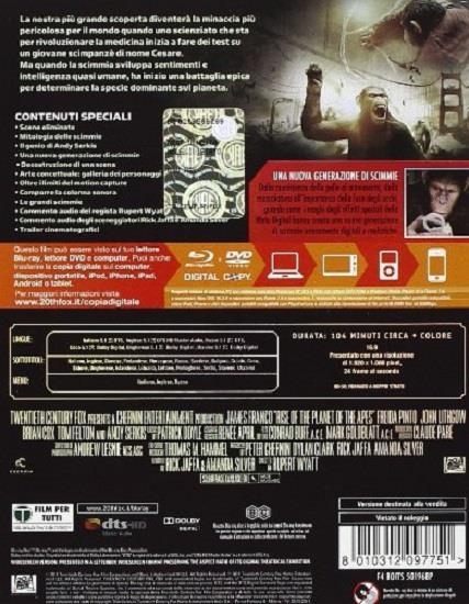 Il pianeta è invaso dalle scimmie, la ricerca scientifica si scontra con la compassione e l'arroganza. Sono questi gli elementi essenziali de L'Alba del Pianeta delle Scimmie, film drammmatico che racconta l'inizio della storia emozionante della lotta tra umani e primati. Con L'Alba del Pianeta delle Scimmie vengono svelate le origini dell'incredibile saga Il Pianeta delle scimmie, una serie di 7 film imperdibili, iniziata nel 1968 e che ha coinvolto grandissimi registi tra cui Franklin K. Shaffner e Tim Burton. Nel nuovo film diretto da Rupert Wyatt, la naturale evoluzione si scontra con la ribellione dei primati e la città di San Francisco viene travolta da un'invasione inaspettata che causa il panico tra la folla e rivoluziona la storia del nostro pianeta