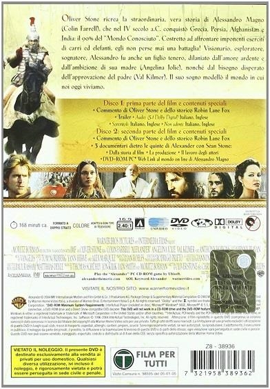 Oliver Stone ricrea, la straordinaria, vera storia di Alessandro Magno, che nel IV secolo a.C. conquistò Grecia, Persia, Afghanistan e India: il 90% del "Mondo Conosciuto". Costretto ad affrontare imponenti eserciti di carri ed elefanti, egli non perse mai una battaglia! Visionario, eploratore, sognatore, Alessandro fu anche un figlio tenero, dilaniato dall'amore ardente e dall'ambizione di sua madre, nonchè dal bisogno disperato dell'approvazione del padre! Il suo sogno modellò il mondo in cui noi oggi viviamo.
