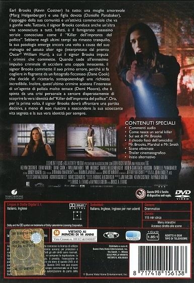 Sono due anni che Mr. Brooks non uccide nessuno e fila diritto. Con l'aiuto di Dio e di un gruppo terapeutico, a cui tace la vera natura della sua dipendenza, è riuscito a reprimere l'altro sé: Marshall, proiezione criminale del suo io, che lo spinge a commettere efferati delitti. Il 'killer delle impronte', fuori servizio, è un padre amabile, un marito fedele e un imprenditore di successo. Ossessionato dal controllo e dalla pulizia, la scena dei suoi crimini non rivela mai un indizio. Ma una notte, mentre consuma un duplice omicidio, qualcuno lo osserva e lo fotografa. Il voyeur non sembra però ansioso di consegnarlo alla giustizia...