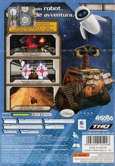Dopo centinaia di anni trascorsi in solitudine a occuparsi di ci per cui è stato creato, WALL - E (la sigla di Waste Allocation Load Lifter Earth-Class) scopre una nuova ragione di vita quando incontra una raffinata robot di ricerca di nome EVE. EVE si rende conto che WALL - E ha trovato per caso la chiave del futuro del pianeta e si affretta a tornare nello spazio per riferire agli umani le sue scoperte. Nel frattempo, WALL - E percorre la galassia alla ricerca di EVE, in una movimentata avventura basata sull'omonimo film Disney-Pixar. Assumi il controllo di WALL - E ed EVE, rivivi alcuni dei momenti più entusiasmanti del film e affronta l'avventura e l'azione ininterrotta durante l'esplorazione di 10 mondi, oltre a sfide multigiocatore testa a testa. Ritroverai la trama, i personaggi e i luoghi chiave del film mentre eseguirai missioni entusiasmanti, schiverai nemici pericolosi e ti farai strada in un mondo futuristico. Il gioco conterrà inoltre nuove trame e nuovi ambienti non presenti nel film. Caratteristiche: Ricopri il ruolo dei tuoi personaggi preferiti tratti dal film Disney-Pixar in uscita nelle sale cinematografiche. Sperimenta l'azione e l'avventura nell'esplorazione dei 10 mondi tratti dal film Gioca con i tuoi amici le sfide testa a testa multigiocatore.