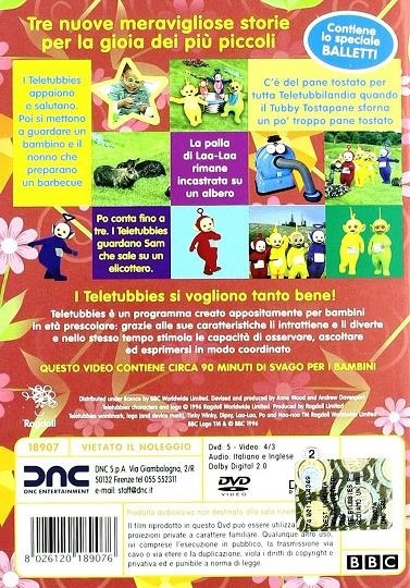Serie tv creata apposta per i bambini piccoli in età prescolare. Storie semplici, che uniscono il lato divertente a quello educativo e hanno una durata di circa 60 minuti. Sono le storie di quattro buffi alieni: Tinky Winky, Dipsy, Laa-Laa e Po. Vivono in un mondo bellissimo fatto da colline ricoperte d'erba, fiori e simpaticissimi conigli, dove la giornata è illuminata da un sole che ha il volto di un bellissimo bimbo biondo e sorridente. I quattro personaggi sono l'immagine di tutti i bambini in quanto amano giocare, ballare, correre e soprattutto farsi tante coccole. Quando in questo mondo magico soffia il vento, una girandola magica diffonde attraverso le immagini su uno schermo posto sul pancino dei Teletubbies, avventure e storie di bambini veri unendo così vicende fantastiche ad altre reali.